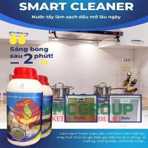 Chất tẩy dầu mỡ bám lâu ngày Smart cleaner là sản phẩm làm sạch dầu mỡ nhà bếp cũng như dầu mỡ công nghiệp cực hiệu quả được sản xuất theo công nghệ phân hủy dầu mỡ của Nga làm biến đổi dầu mỡ làm chúng không còn khả năng bám dính. Sản phẩm còn được bổ sung phụ gia giúp quá trình tẩy rửa diễn ra nhanh chóng chỉ trong vòng 5 phút